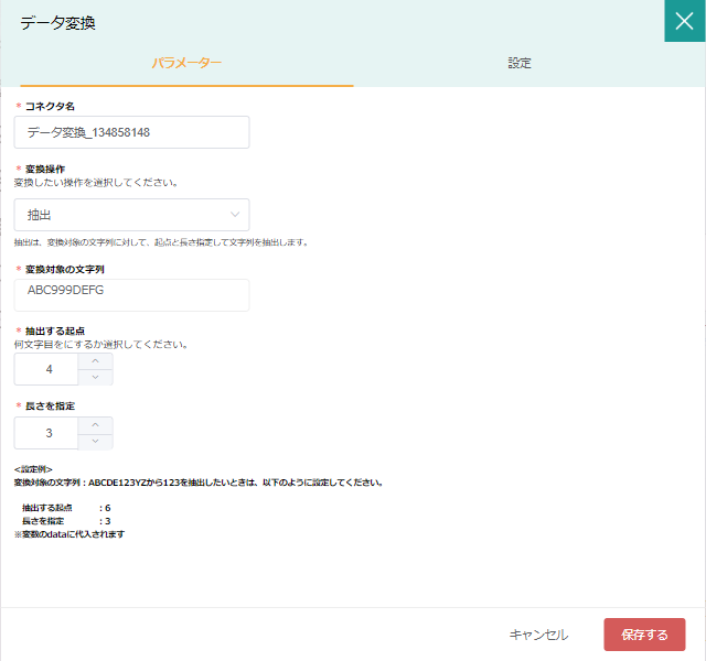 | 抽出する起点 | 〇 | 抽出起点が何文字目か指定 | 画像は4 |