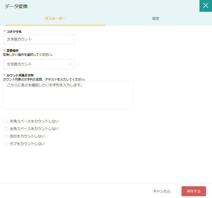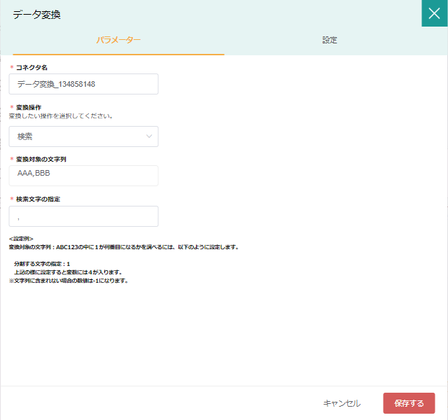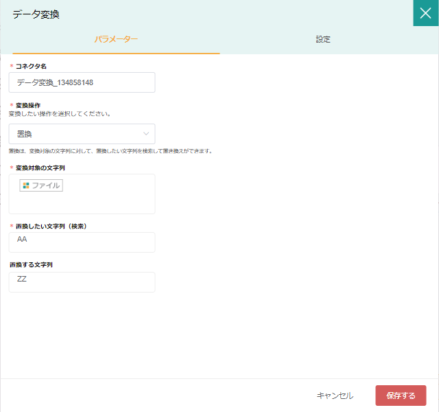 変換対象の文字列 | 〇 | 対象の文字列を選択 | 別コネクタからの変数でも可能 |