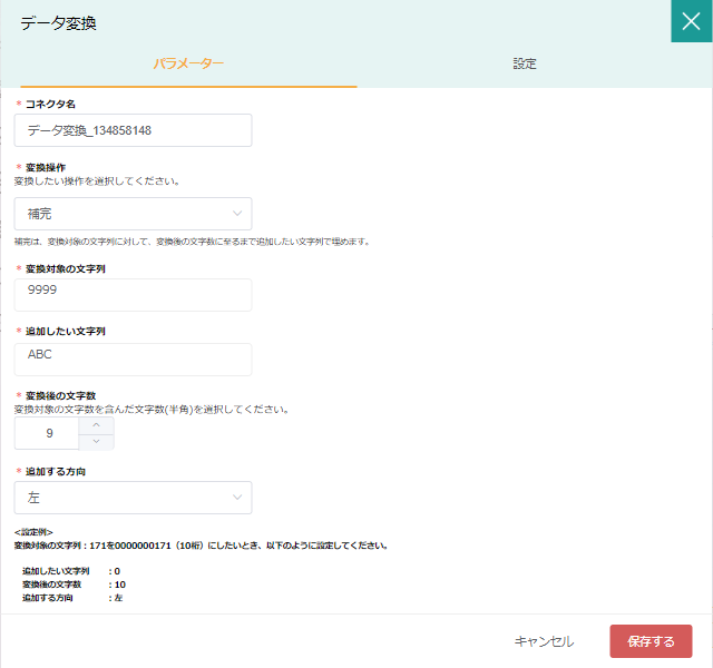 | 追加する方向 | 〇 | 追加したい文字列をどの方向に追加したいか選択 | 左/右/中央 |