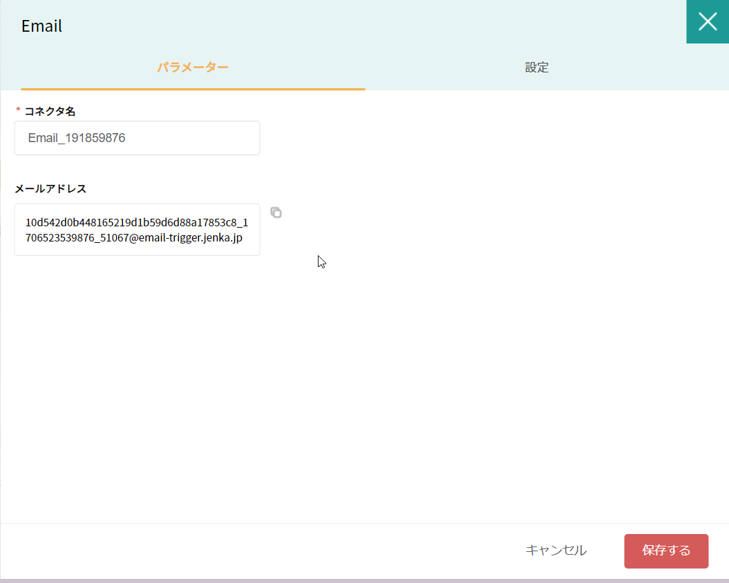 メールアドレス | 〇 | コネクタ毎にユニークなメールアドレスが発行される | サービス認証した認証名が表示 |