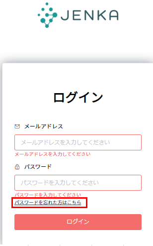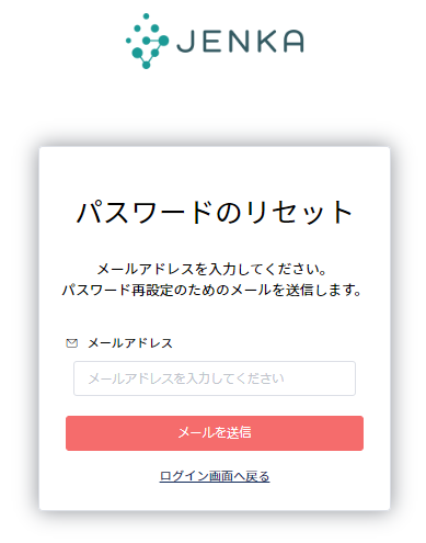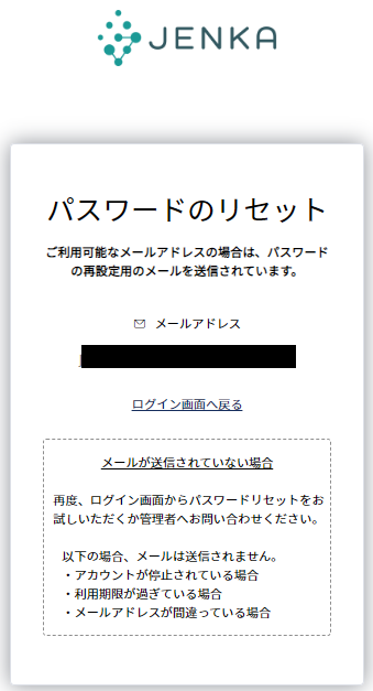 下記画面表示後、件名「【JENKA】パスワードリセットのご案内