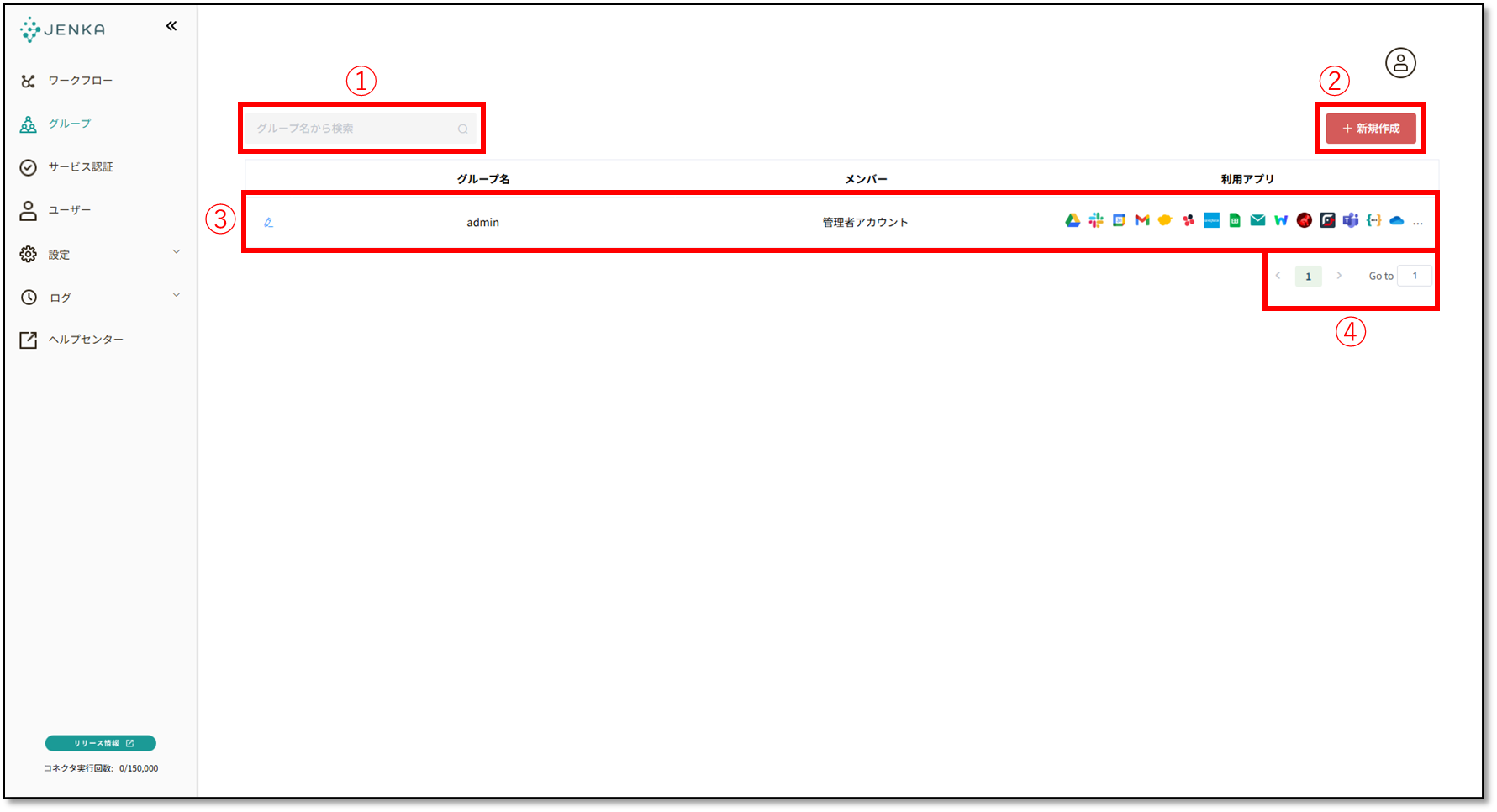 | 利用アプリ | グループに許可されているサービスのロゴアイコンが表示されます。 |