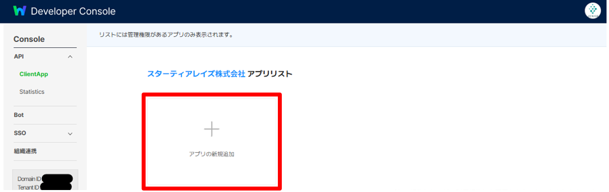 2. Console>API>ClientApp>アプリの新規追加をクリック