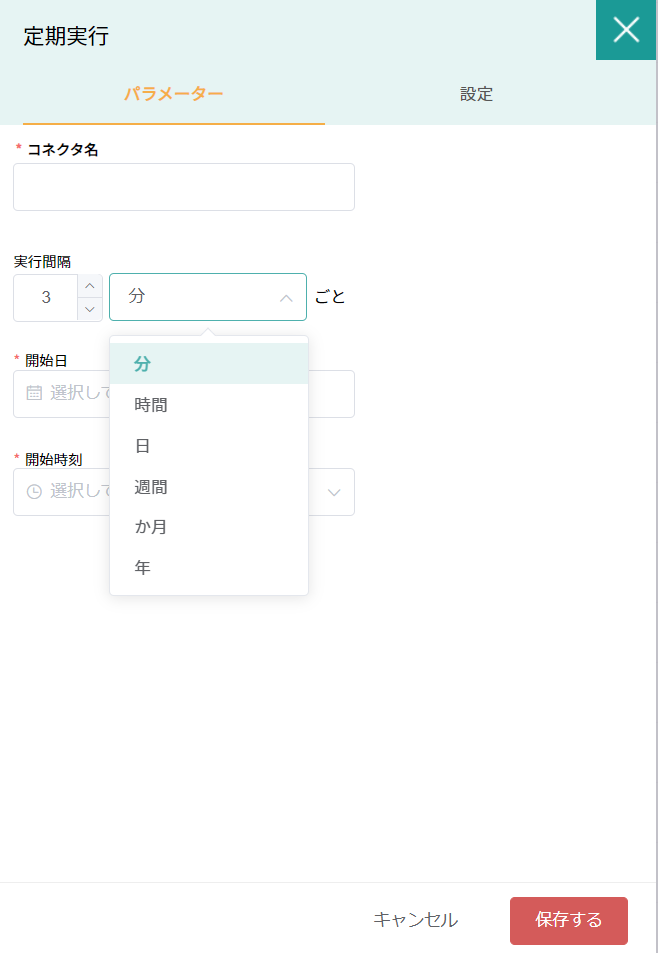 | 実行間隔 | X(分/時間/日) | 条件にしたい数字と頻度を選択 |