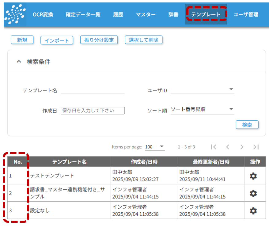 * テンプレートIDを指定 ... スマートOCRの「テンプレート」のページの中にあるテンプレートのリストの番号を指定してください